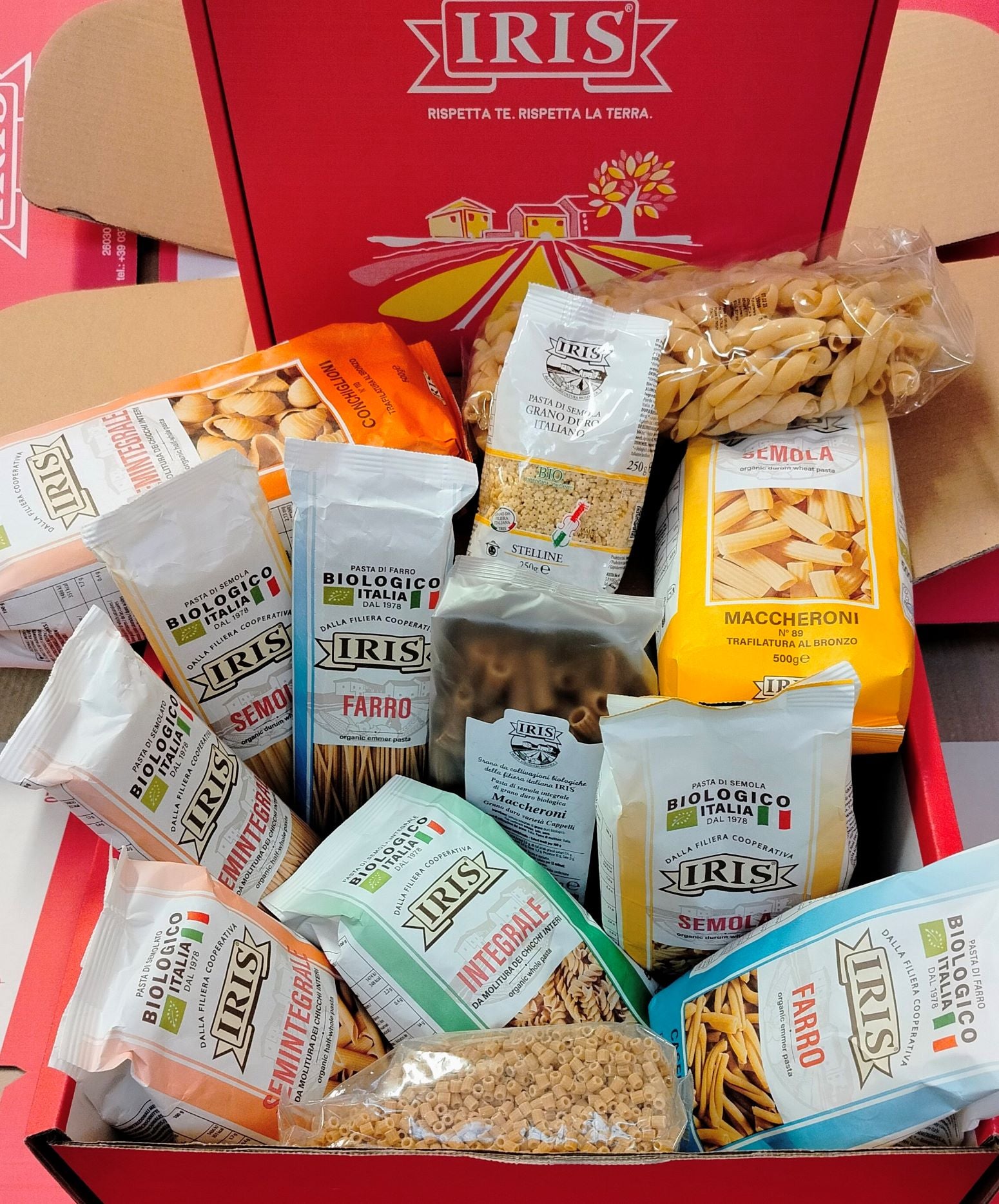 Questo pacco è stato composto per un assaggio di pasta di varie tipologie. L'ho pensato per l'assaggio ai nostri soci agricoltori, che producono le materie prime della filiera agricola biologica Iris. Il socio ha uno sconto speciale, ma tutti voi potete degustare sicuramente l'alta qualità delle nostre produzioni!